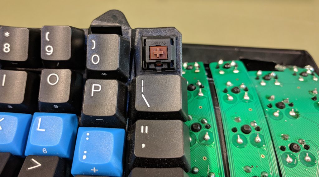 And it contains the Cherry MX Brown mechanical switches, shown below.